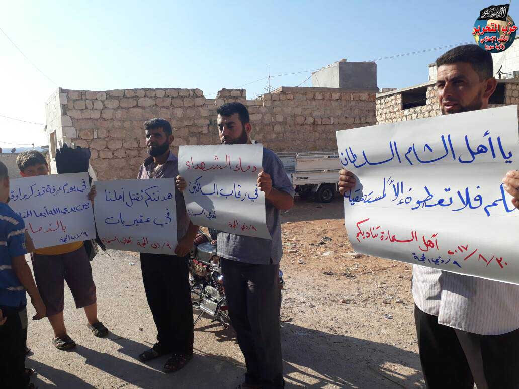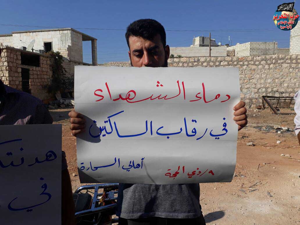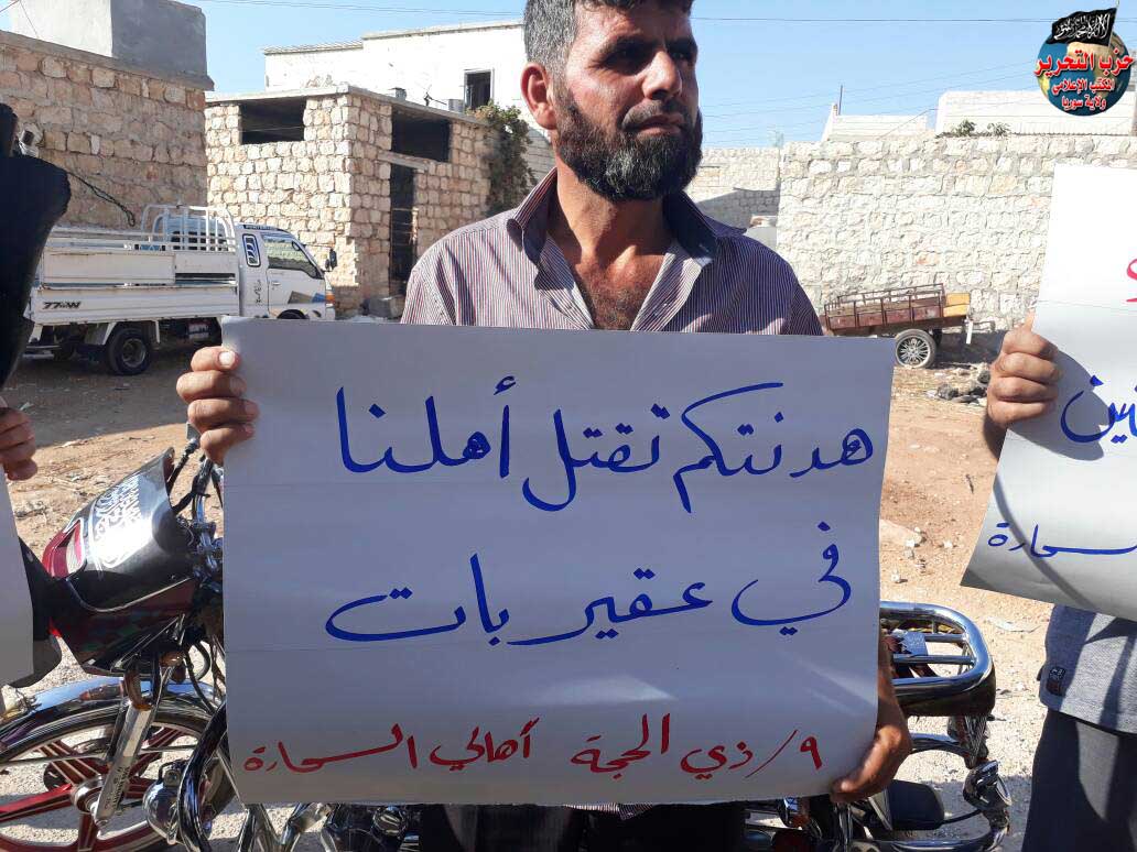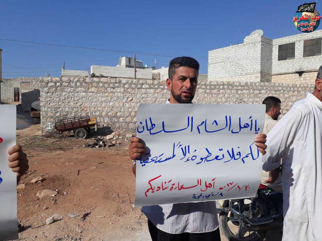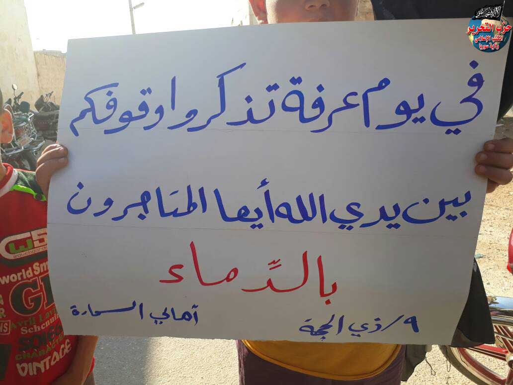 وقفة في قرية السحارة بريف حلب الغربي نظمها شباب حزب التحرير نصرة لعقيربات ورفضاً للهدن مع النظام البعثي المجرم