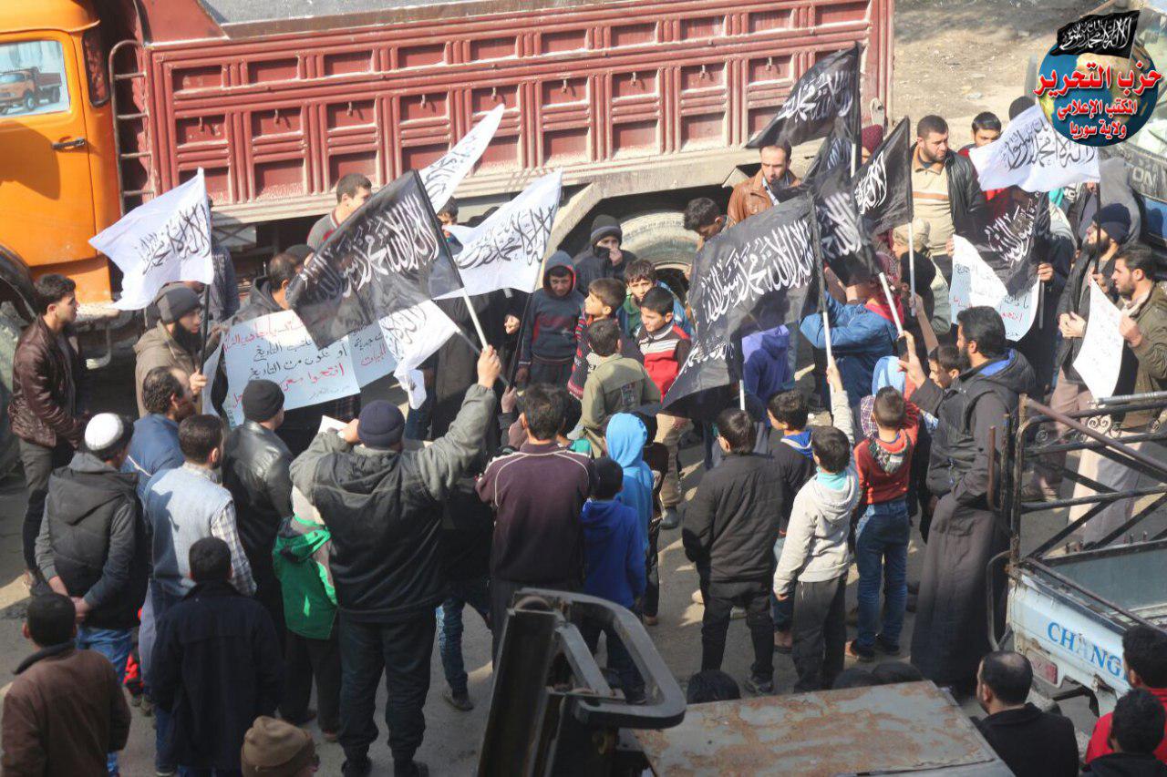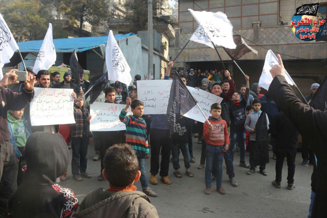 مظاهرة في مدينة سلقين بريف ادلب نظمها شباب حزب التحرير ولاية سوريا إسقاطاً للقادة المرتبطين ودعوة لتسليم السلاح لأهله