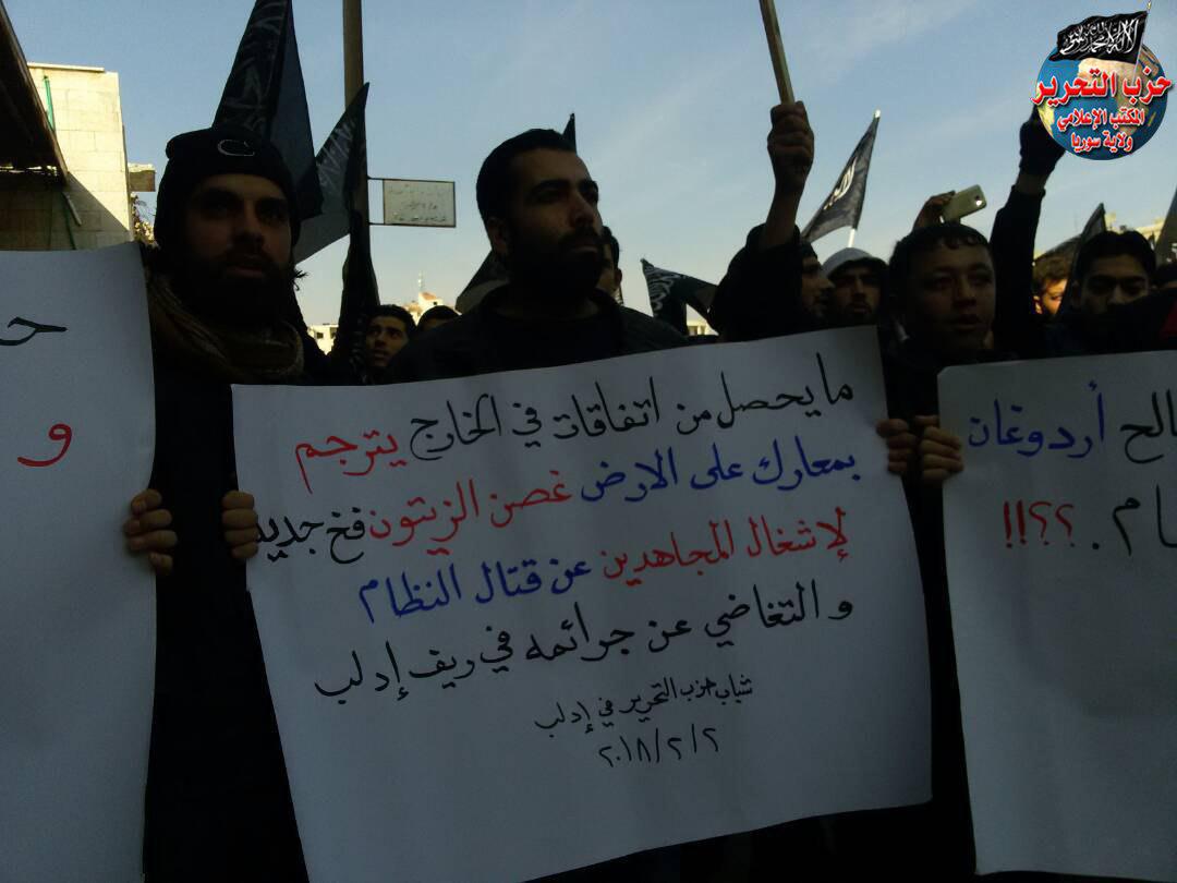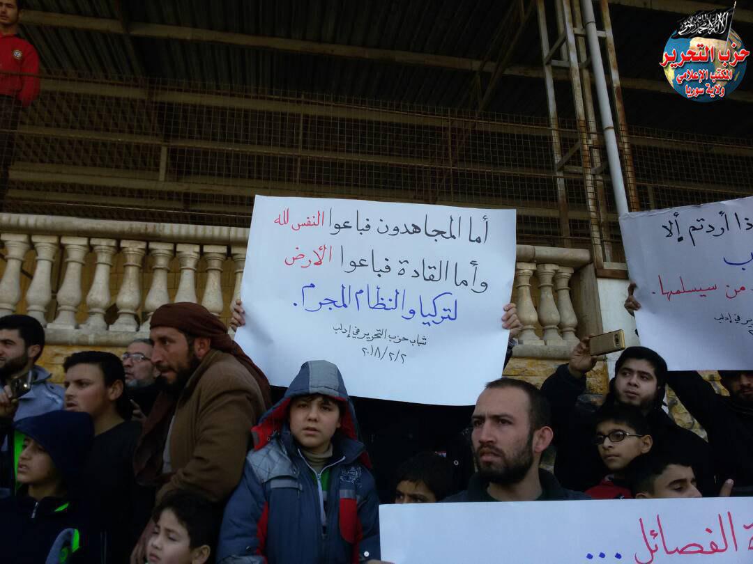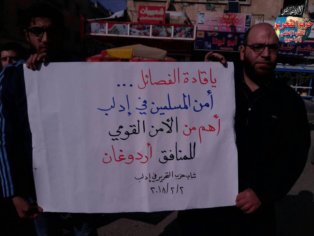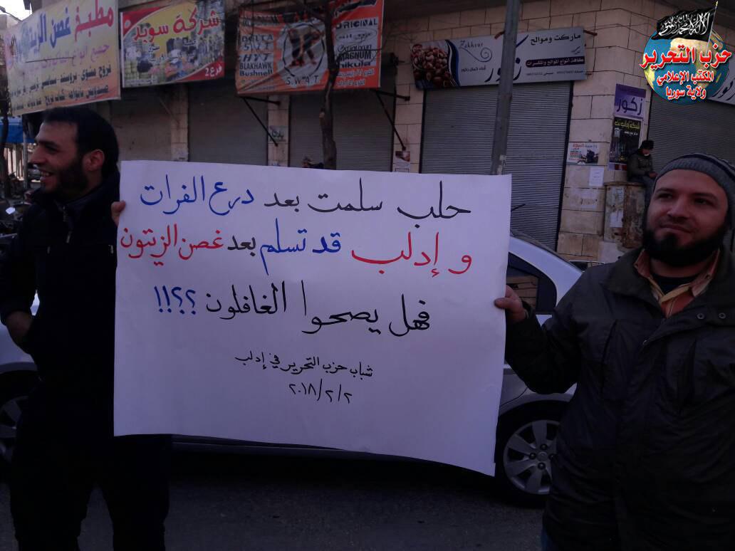 مظاهرة في مدينة ادلب نظمها شباب حزب التحرير ولاية سوريا إسقاطاً للقادة المرتبطين ودعوة لتسليم السلاح لأهله.