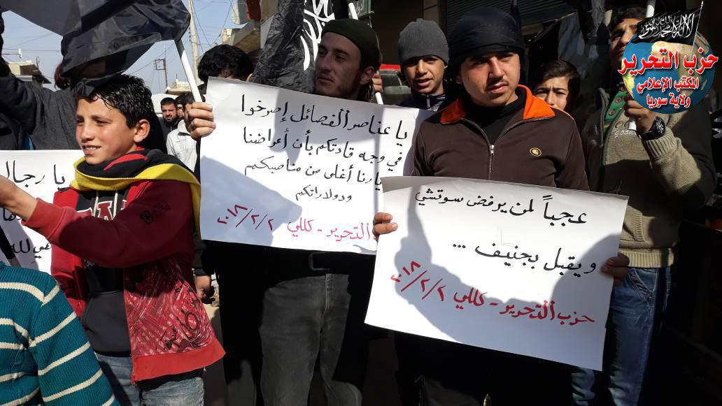مظاهرة في بلدة كللي بريف ادلب نظمها شباب حزب التحرير ولاية سوريا إسقاطاً للقادة المرتبطين ودعوة لتسليم السلاح لأهله.
