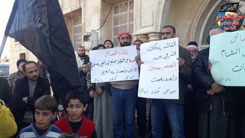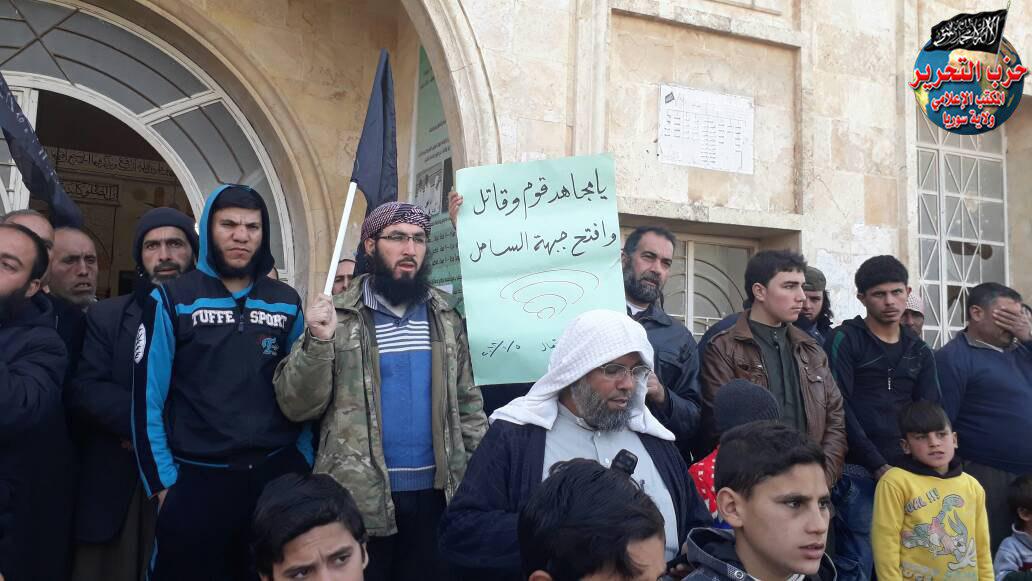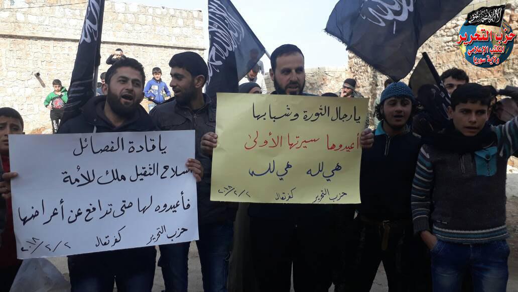 وقفة في بلدة كفر تعال بريف حلب الغربي نظمها شباب حزب التحرير ولاية سوريا إسقاطاً للقادة المرتبطين ودعوة لتسليم السلاح لأهله.