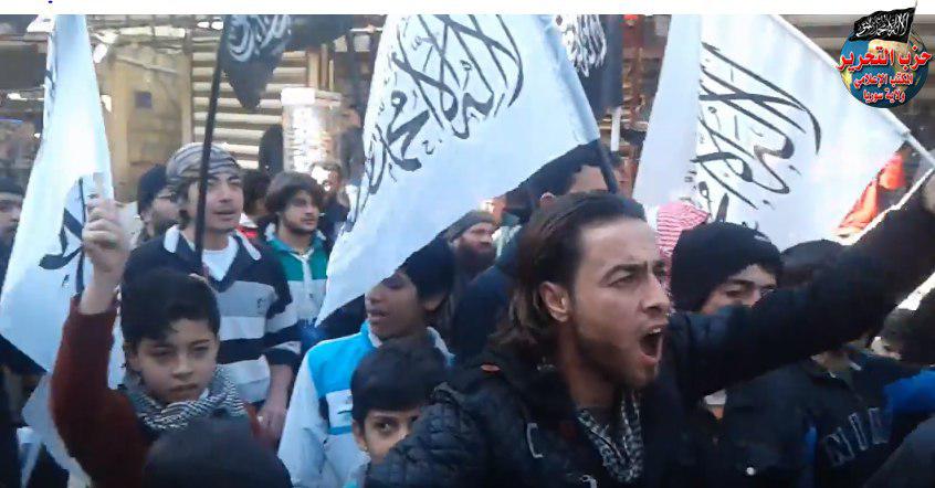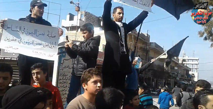 مظاهرة في بلدة كفر نبل في ريف ادلب نظمها شباب حزب التحرير ولاية سوريا إسقاطاً للقادة المرتبطين ودعوة لتسليم السلاح لأهله.