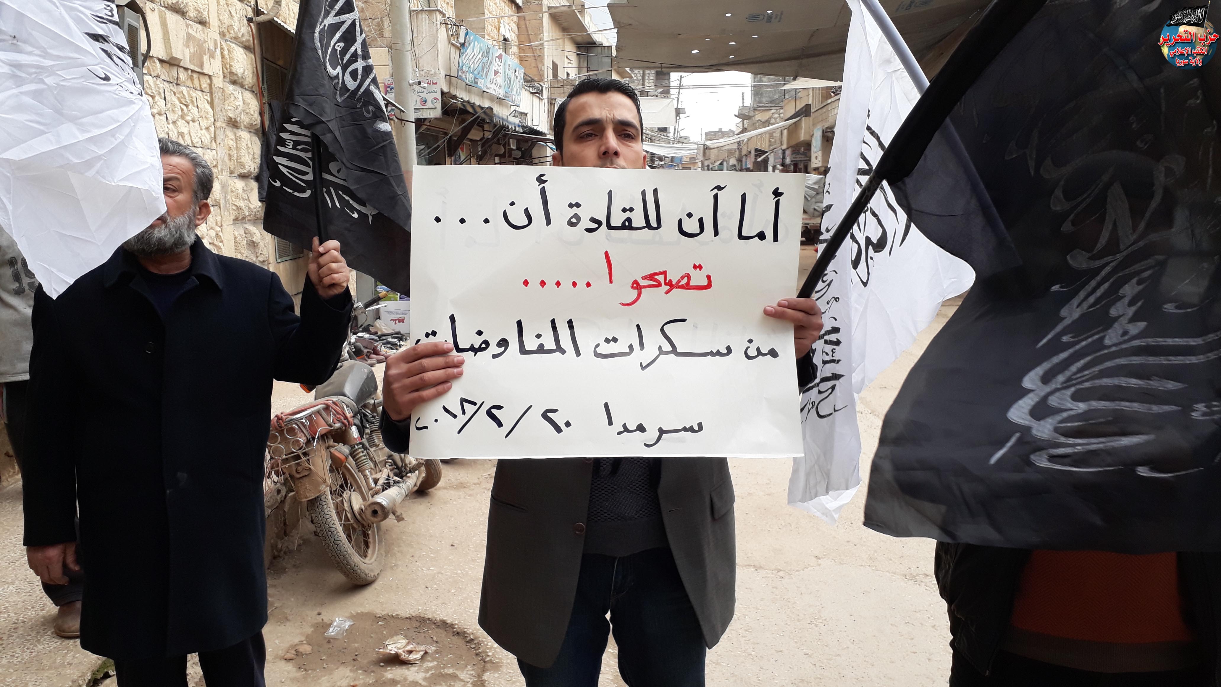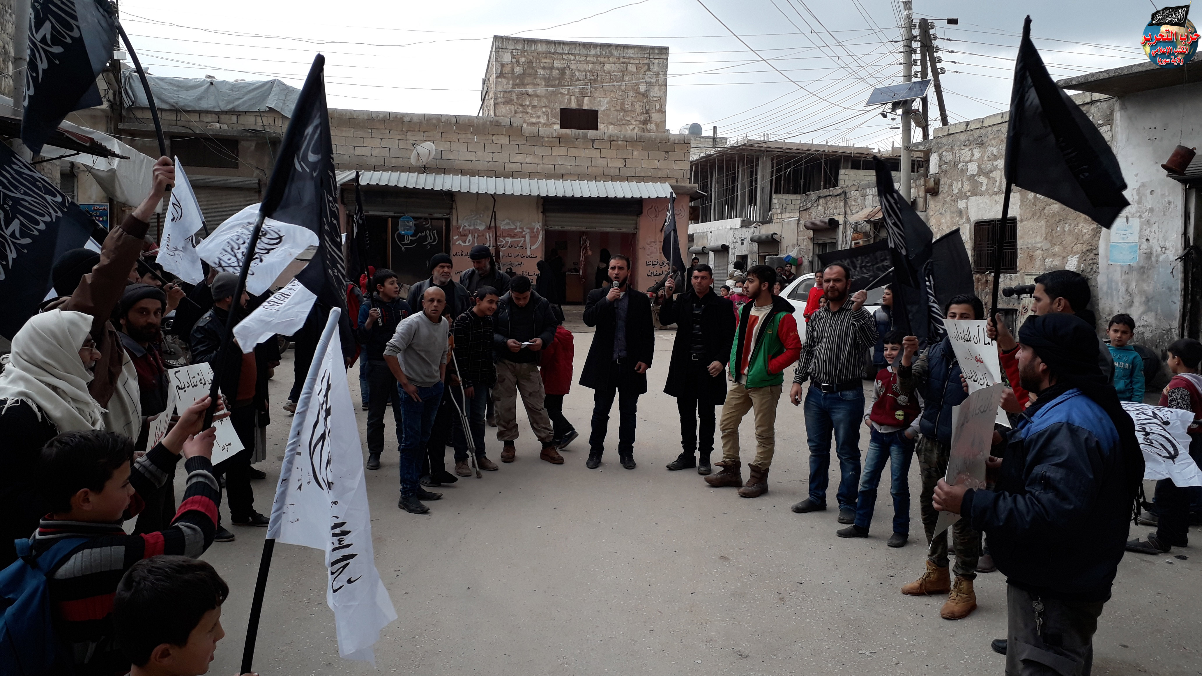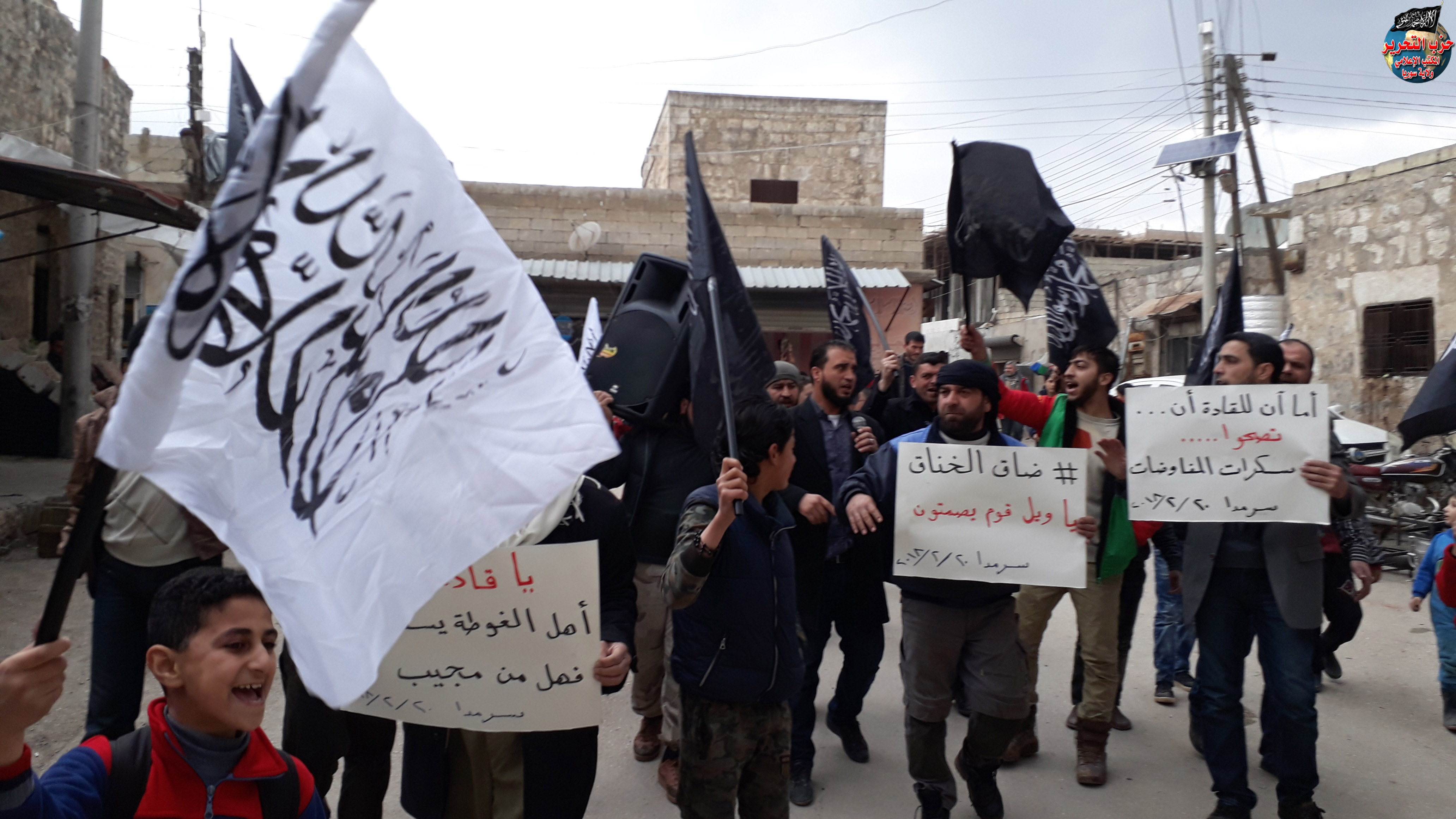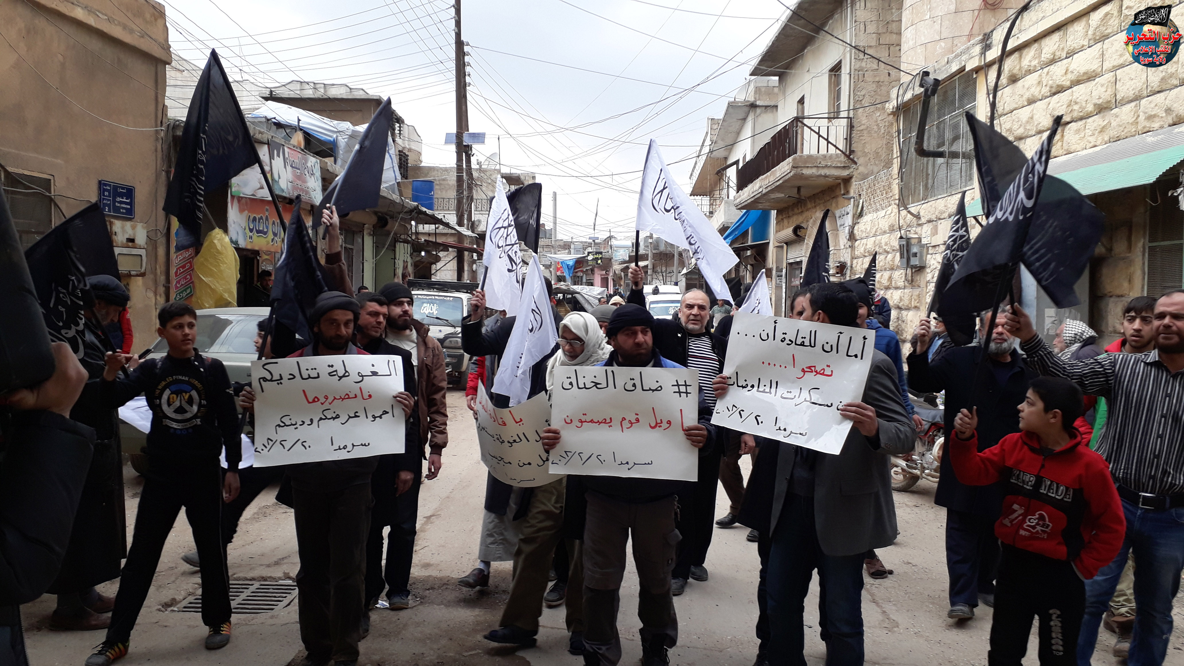 مظاهرة في بلدة سرمدا بريف إدلب الشمالي نظمها شباب حزب التحرير نصرة للغوطة ولمطالبة الفصائل بفتح معارك الساحل ودمشق