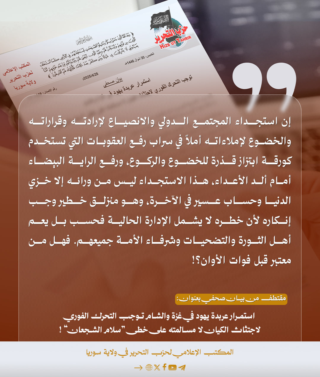 كتبه للمكتب الإعلامي لحزب التحرير ولاية سوريا