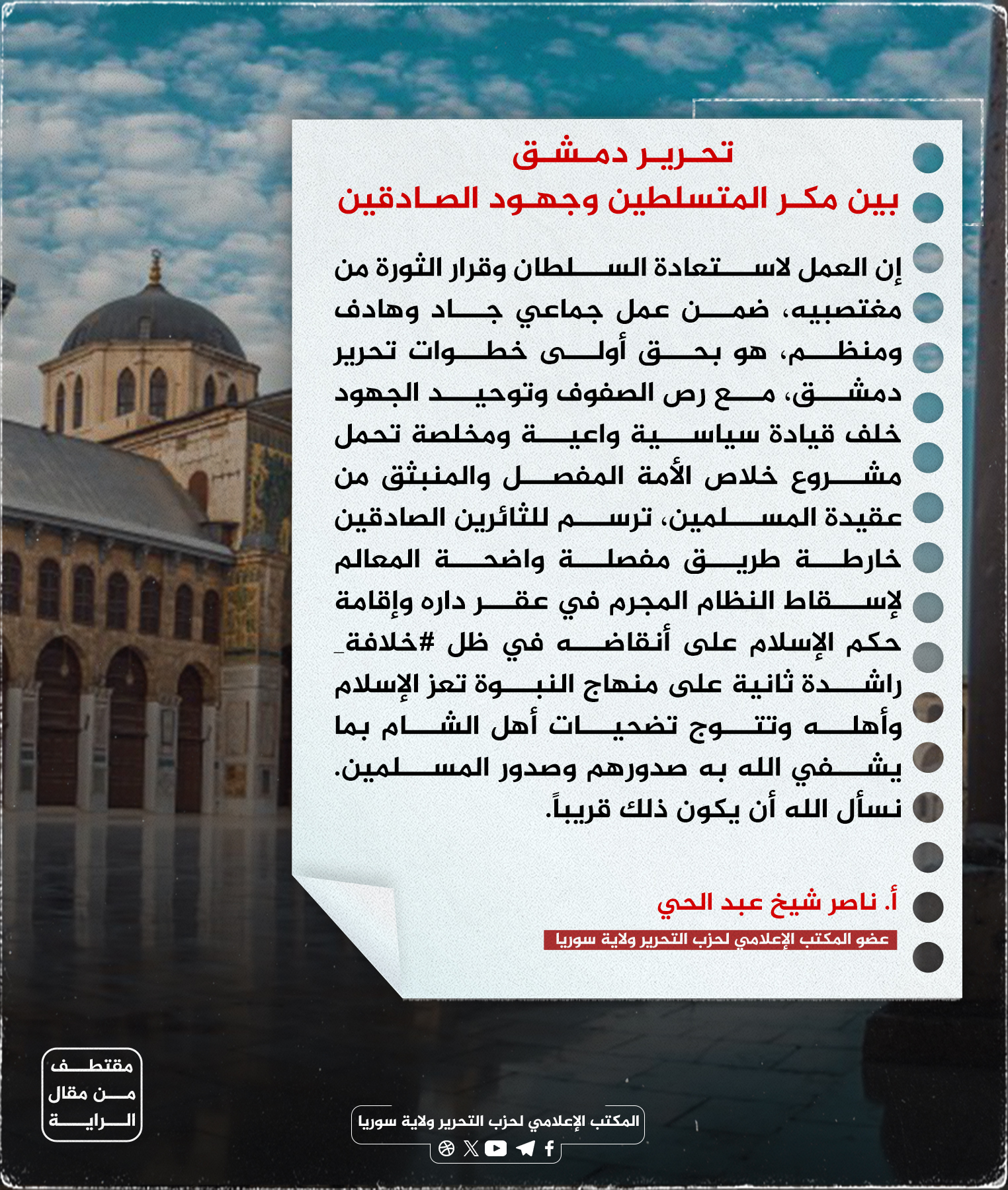 لا لجريمة الحل السياسي نعم لإسقاط النظام وإقامة الخلافة