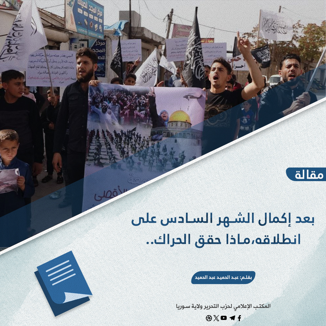 لقد أثبت الحراك أن في المحرر عيوناً ساهرة متيقظة، في وجه كل من يريد شرّاً بثورتنا وأهلنا الثائرين، ورُوّاداً ناصحين لا يكذبون أهلهم، وأصوات حق ترى بنور الله، ومستعدون للتضحية والابتلاء فداءً لتضحيات وثورة هذا الشعب الكريم.