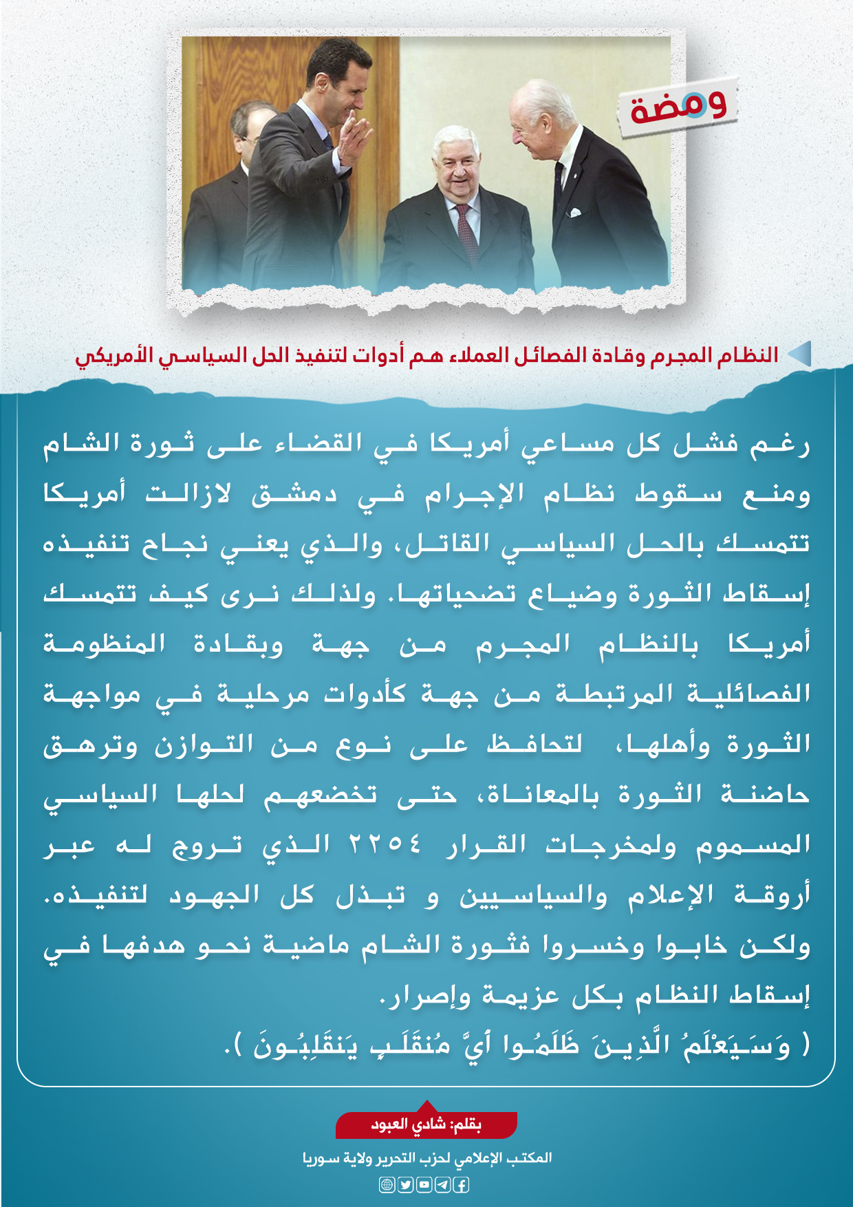 النظام المجرم وقادات الفصائل العملاء هم أدوات لتنفيذ الحل السياسي الأمريكي