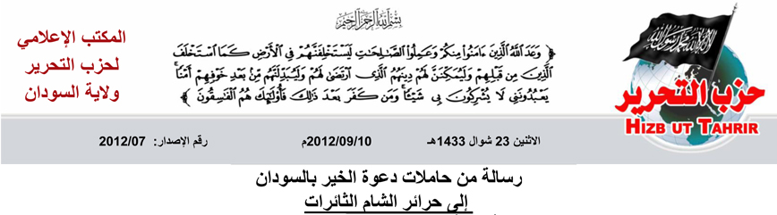 إننا حاملات الدعوة في السودان نقول لأخواتنا في سوريا، والله إن ما يؤلمكن يؤلمنا، فجرحكن جرحنا، وفقدكن فقدنا، ونؤكد لكنّ أن ما قاله وزير خارجية السودان لصحيفة دي بريسيه النمساوية ونقلته صحيفة الماسة السورية في يوم 24 حزيران/يونيو 2012م، والذي أكد فيه رفض السودان للتدخل في شئون سوريا، ودعوته إلى الحوار واتباع الحل السياسي وأن تقف مختلف الأطراف على حل سلمي للأزمة، نؤكد لكنّ أن كل ذلك لا يمثلنا البتة، فهو يمثل حكومته التي ترسل النصائح والإرشادات لبشار الأسد المجرم، حتى يبقى في حكمه الظالم، الهاضم لحقوق الناس؛ النظام الذي آذى الحجر والشجر وليس الناس فقط.