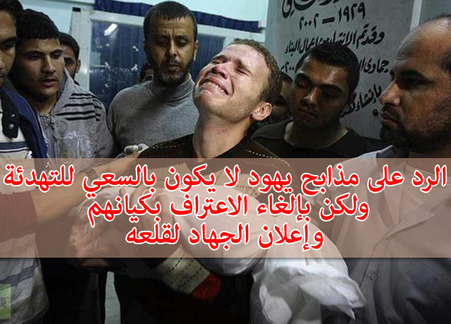 إن فلسطين أرض إسلامية فتحها الصحابة، ورواها المسلمون بدمائهم الزكية، رقبتها ملك لهذه الأمة إلى قيام الساعة، ولا يجوز شرعاً، ولا بحال من الأحوال، الاعتراف بكيان يهود الغاصب لها، ولا يجوز عقد معاهدات سلام معه وإقامة علاقات دبلوماسية، وفتح سفارات، وتبادل سفراء، بل الواجب شرعاً أن تكون الحالة الأصلية بيننا وبينه هى حالة الحرب إلى أن نقتلعه من بلدنا ونستأصله من أرضنا فلسطين. أما أن يكون الرد "رسالة احتجاج" تُسَلَّم لسفيرهم، أو استدعاء لسفيرنا من عندهم "للتشاور"، مع الإبقاء على هذه المعاهدات الخيانية، والوقوف موقف المتفرج من هذه المذابح الشنيعة التي يرتكبها الصهاينة ضد أهلنا هناك، فإن هذا والله لهو الخزي المبين، والخروج عن طاعة الله سبحانه الذي أمر المسلمين بنصرة إخوانهم وتحرير بلادهم: )وَاقْتُلُوهُم حَيْثُ ثَقِفْتُمُوهُم وأَخْرِجُوهُم مِن حَيْثُ أَخْرَجُوكُم(.